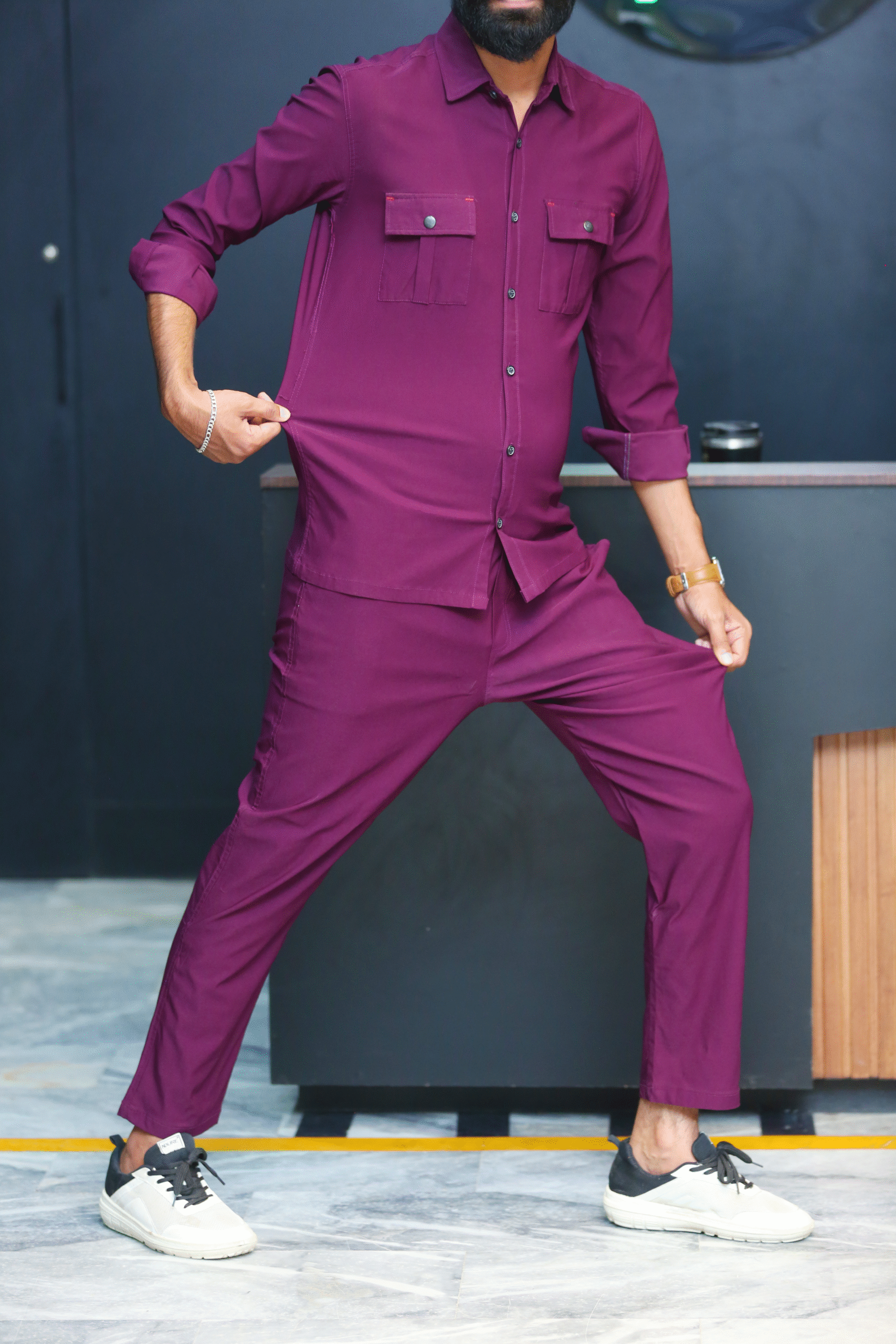 ✔️ Matching Stretch Trousers – With adjustable waistband for comfort.